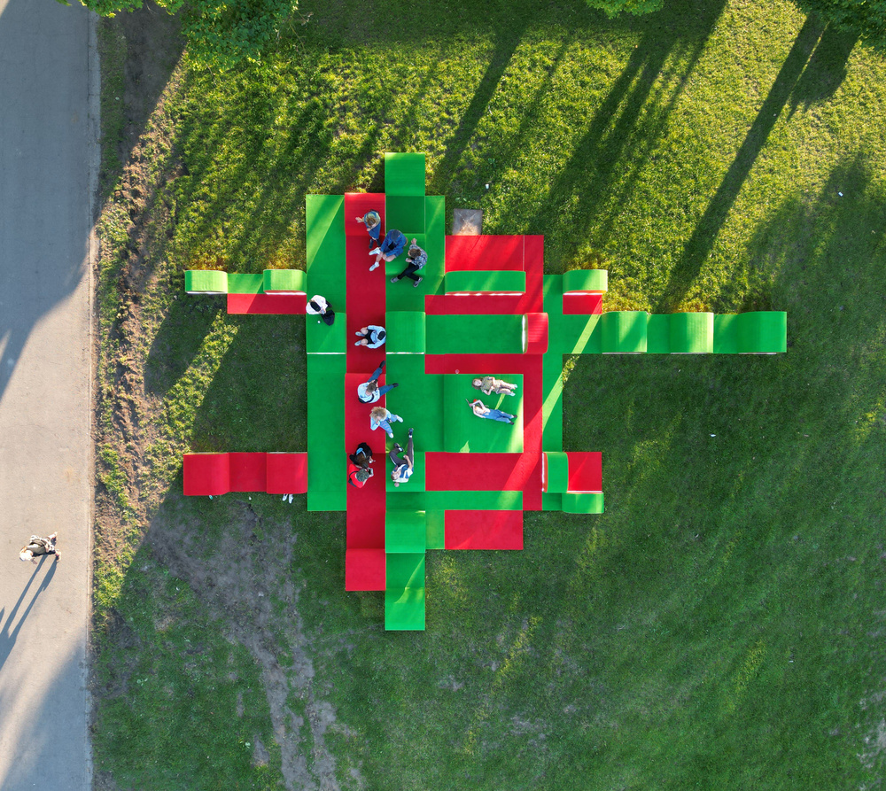 Roskilde Festival / 2022 / design, construction and concept devleopmentWoven Together is a colourful woven landscape with volumes creating different opportunities for seating and hanging out. The installation is designed by Elvira Von Wieding & Sia Hurtigkarl as a site specific installation for Roskilde Festival 2022.